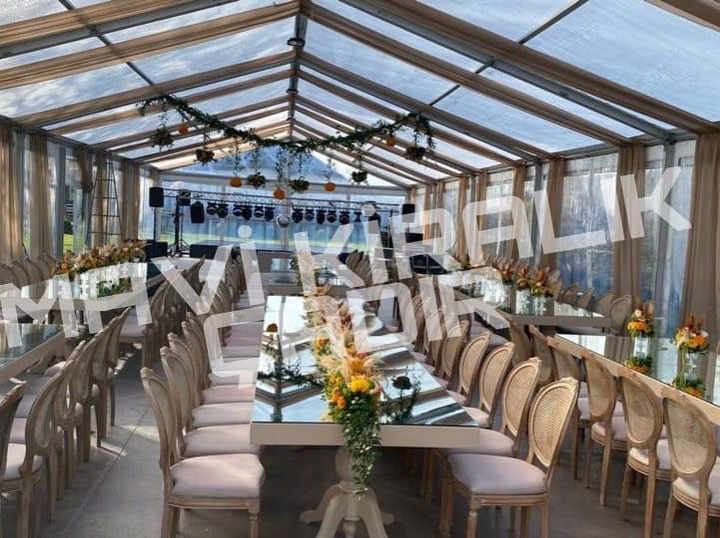 Düğün, festival gibi organizasyonlarınızda şeffaf ve modern kiralık çadırlarımızla hizmetinizdeyiz.
